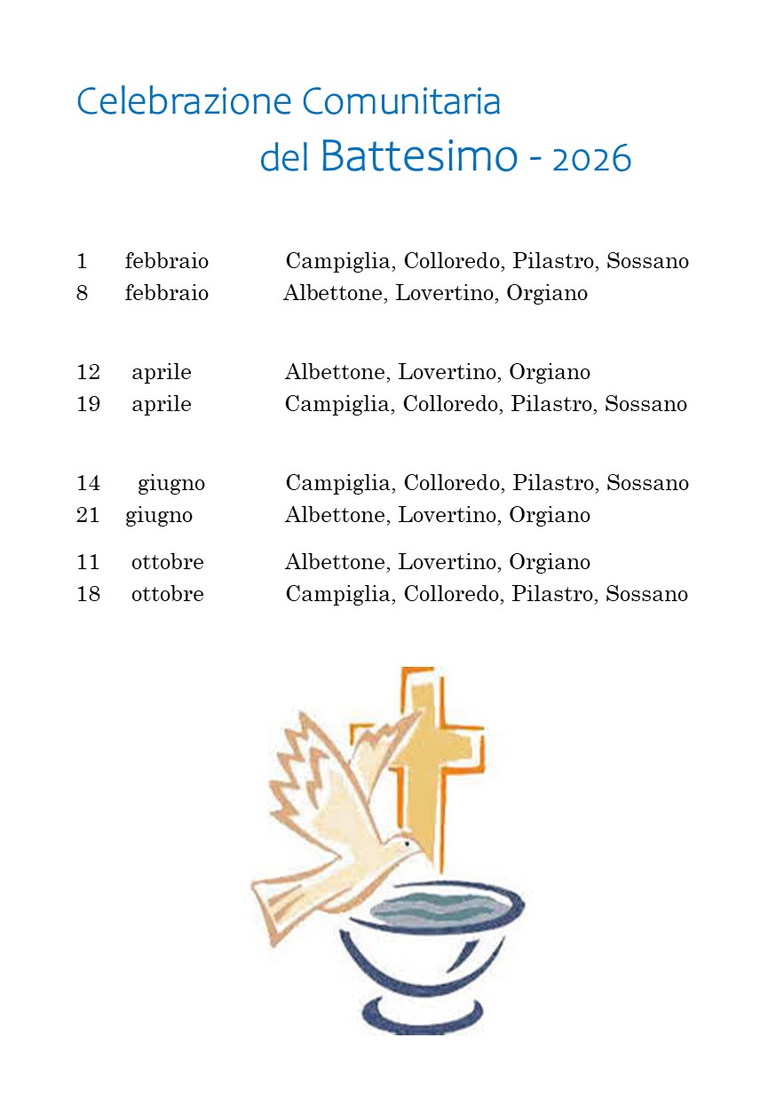 Il Battesimo Comunitario si celebra la domenica durante la Messa principale della Parrocchia.